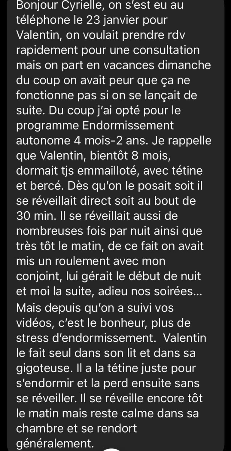 J'ai découvert les spécialistes du sommeil et en quelques conseil tout a changé. C'est pour cela que j'ai obtenu la meilleure certification au monde 💜 puis j'ai créé ma propre méthode qui a largement fait ses preuves depuis !